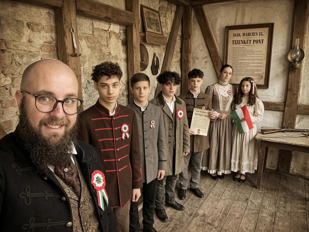 A mai március 15-i ünnepségen iskolánk méltó módon emlékezett meg nemzeti ünnepünkről. A megemlékezést történelemtanárunk, Kovács Gergő szervezte, aki tartalmas és emelkedett hangulatú műsort állított össze.